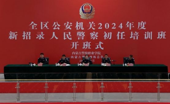 2025年3月25日上午,全区公安机关2024年度新招录人民警察(公安院校毕业生)初任培训班在内蒙古警察职业学院和林格尔校区隆重开班。自治区公安厅政治部人事训练处处长江田,内蒙古警察职业学院党委委员、副院长哈布日,成教处处长陶德,成教处学员大队大队长周亮出席开班式,1110名培训班学员参加,开班式由公安厅政治部人事训练处副处长王宾祖主持。