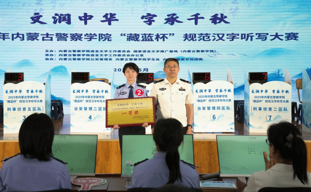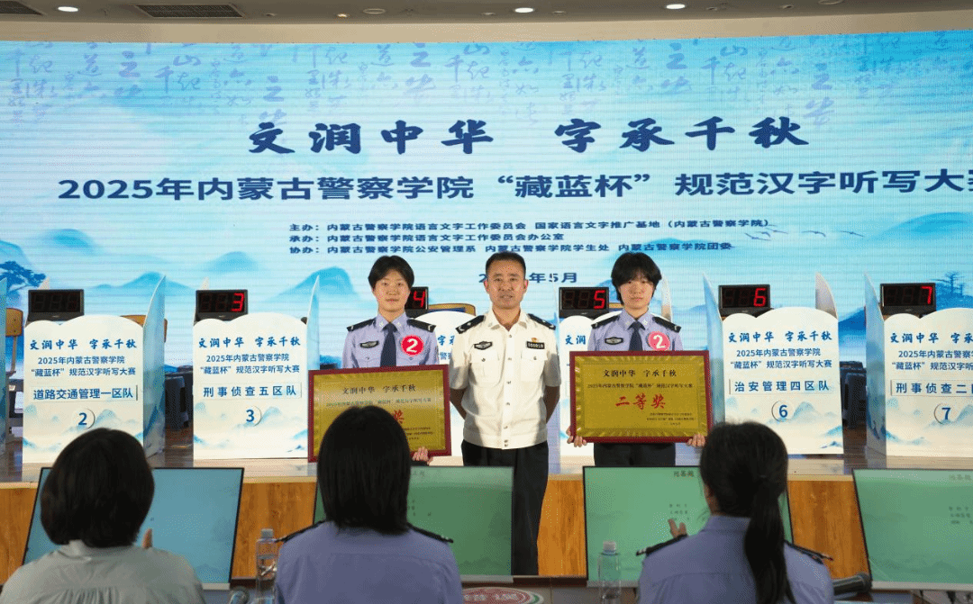 为大力弘扬中华优秀传统文化,不断推广国家通用语言文字,持续铸牢中华民族共同体意识,2025年5月28日下午,内蒙古警察学院在警训楼隆重举办以“文润中华 字承千秋”为主题的“藏蓝杯”规范汉字听写大赛。学院分管领导哈布日出席,各系部教师、辅导员代表和2024级学生代表到场观看。
