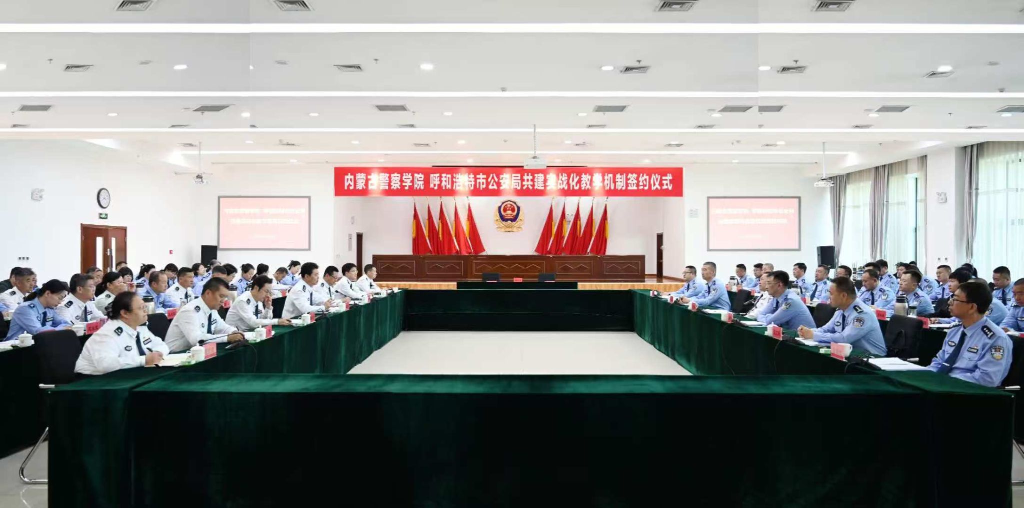 9月24日,内蒙古警察学院与呼和浩特市公安局在新城校区隆重举行共建实战化教学机制签约仪式。公安厅党委委员、副厅长、内蒙古警察学院党委书记赵剑南,公安厅党委委员、副厅长、呼和浩特市政府副市长、市公安局党委书记、局长牛芳泽出席仪式,学院与呼市公安局两级党委班子成员,及内设机构相关负责同志共70余人参加签约仪式,共商合作共建大计,共谱合作共建新篇。