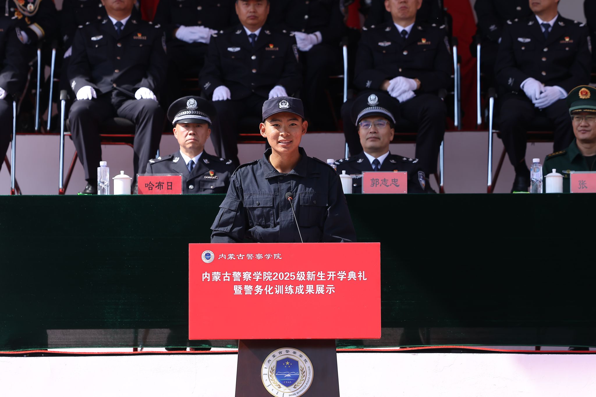 教师代表侦查学院吴霜老师,学生代表2025级刑事侦查一区队李锦泽,新生家长代表巴彦淖尔市公安局交管支队甘其毛都大队大队长、全国公安系统二级英模斯日古楞同志分别发言,从不同层面诠释了对学院的归属感、责任感和事业心。