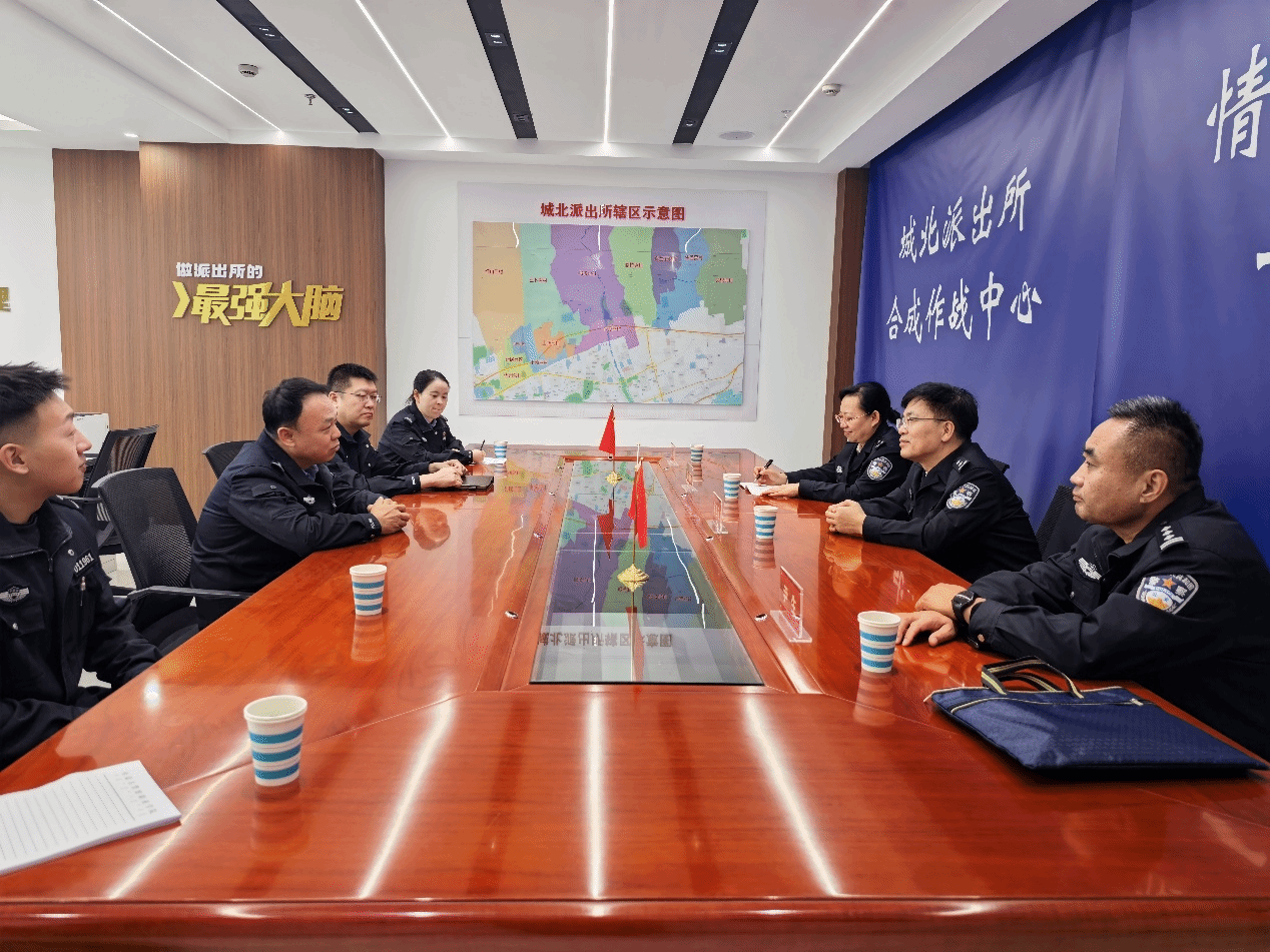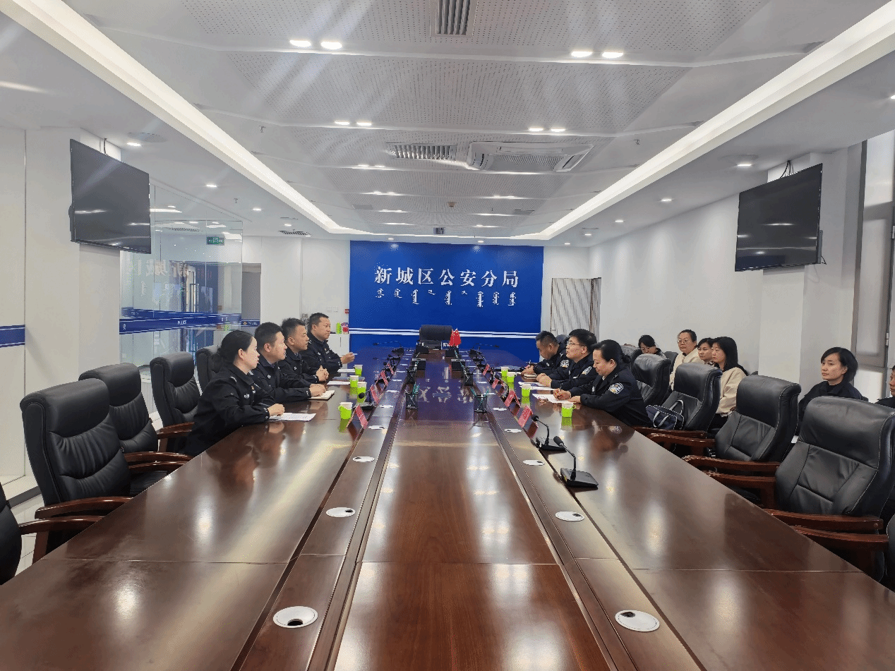 为贯彻落实学院实战化教学改革部署要求,深入了解2025年教师实践锻炼情况,推动实践锻炼各项工作举措落地落细,推进校局合作共建走深走实,10月17日,学院党委委员、副院长郭志忠带领教务处相关负责人一行赴呼和浩特市公安局新城区公安分局及丁香北路、城北等基层派出所,看望学院实践锻炼教师,并开展座谈交流。新城区公安分局党委副书记、政委伊曙龙及相关部门负责人参加活动。