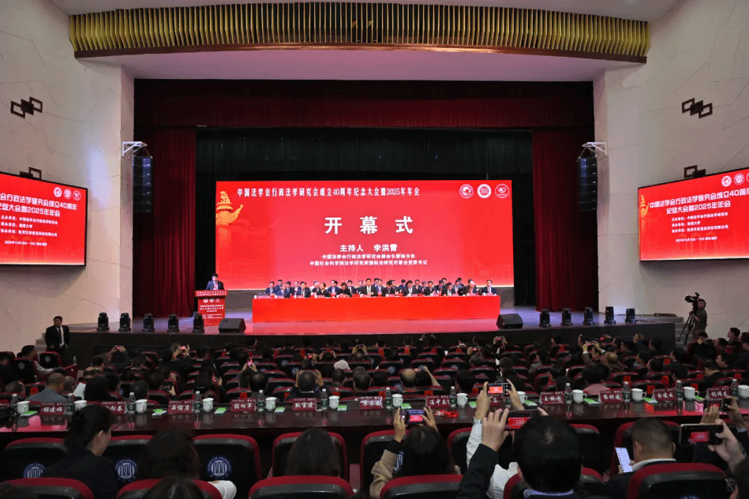 年会以“进一步全面深化改革与法治政府建设”为主题,围绕行政法学理论创新、行政执法体制改革、行政争议机制健全等核心议题展开深度研讨。年会不仅系统总结了研究会40年来的发展历程,更聚焦“十五五”时期法治国家建设需求,为行政法学研究与行政审判实践、行政执法改革的协同创新提供了重要平台。年会开幕式上,中国法学会副会长、学术委员会主任、行政法学研究会会长,中国政法大学校长马怀德教授以“铭记来时路,不负今朝志,奋进新征程”为题作主旨报告,与会人员共同观看了研究会成立四十周年纪念短片,现场表彰中国行政法学“终身成就学者”和中国行政法学“杰出贡献学者”,颁发“从事行政法教研四十年荣誉证书”,宣布“中国行政法学四十年优秀成果”“2025 年年会优秀论文”,并为第十二届“应松年行政法学奖学金”获得者颁发证书。