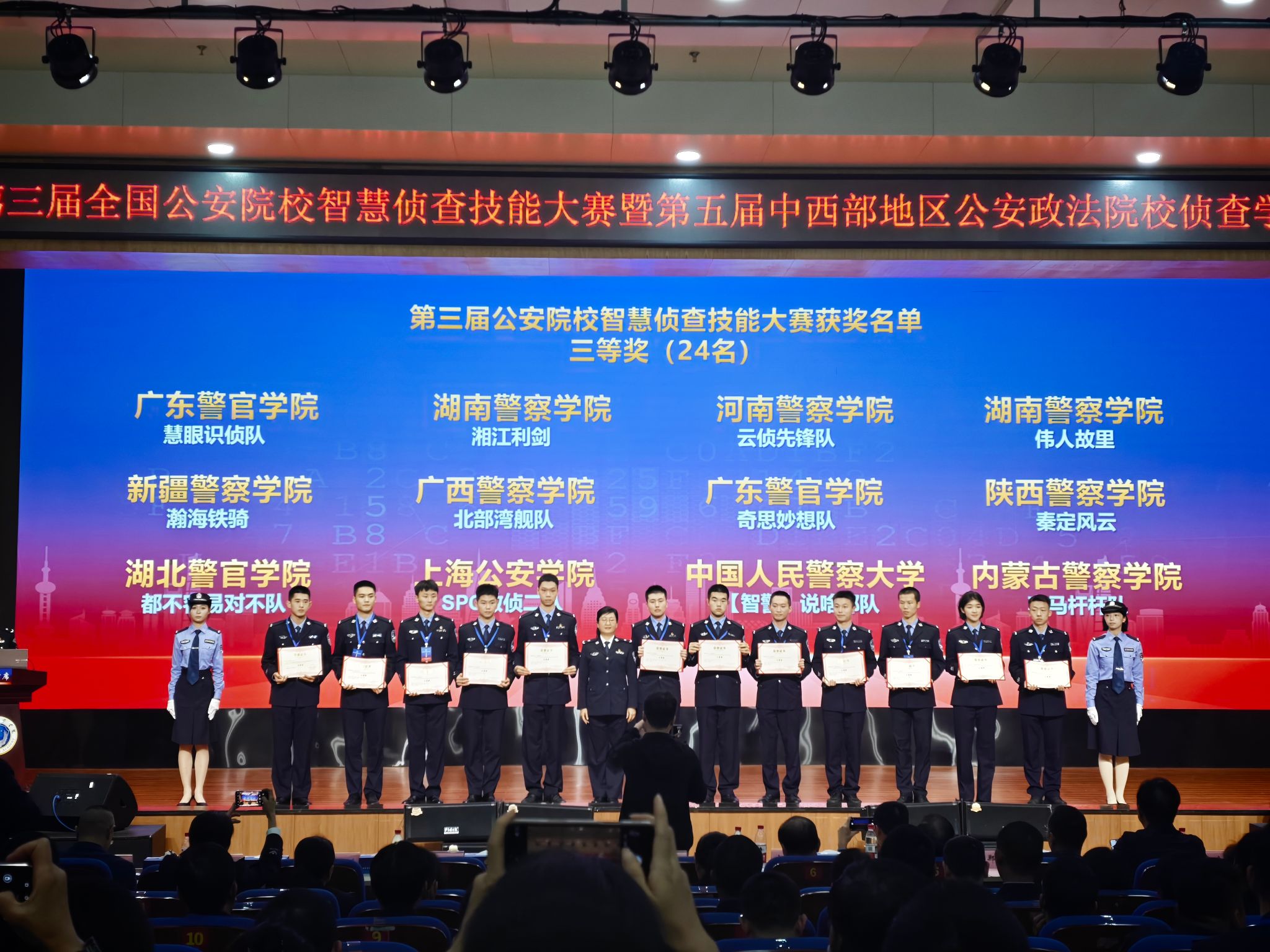 2025年11月1日,第三届全国公安院校智慧侦查技能大赛暨第五届中西部地区公安政法院校侦查学术研讨会在湖南警察学院开幕。本次活动以“数据赋能・智侦融合・实战引领・协同创新”为主题,汇聚了26所公安院校的百余位专家学者和49支参赛队伍。我院选派5名侦查专业优秀学生组成“套马杆杆队”参赛,经过多轮激烈角逐,最终凭借扎实的专业功底与出色的实战能力,成功斩获大赛三等奖。