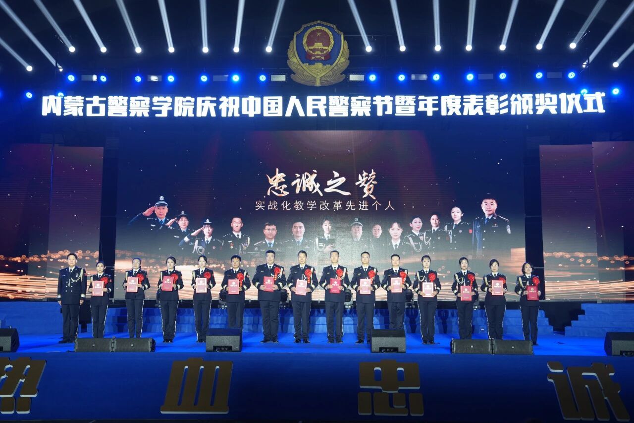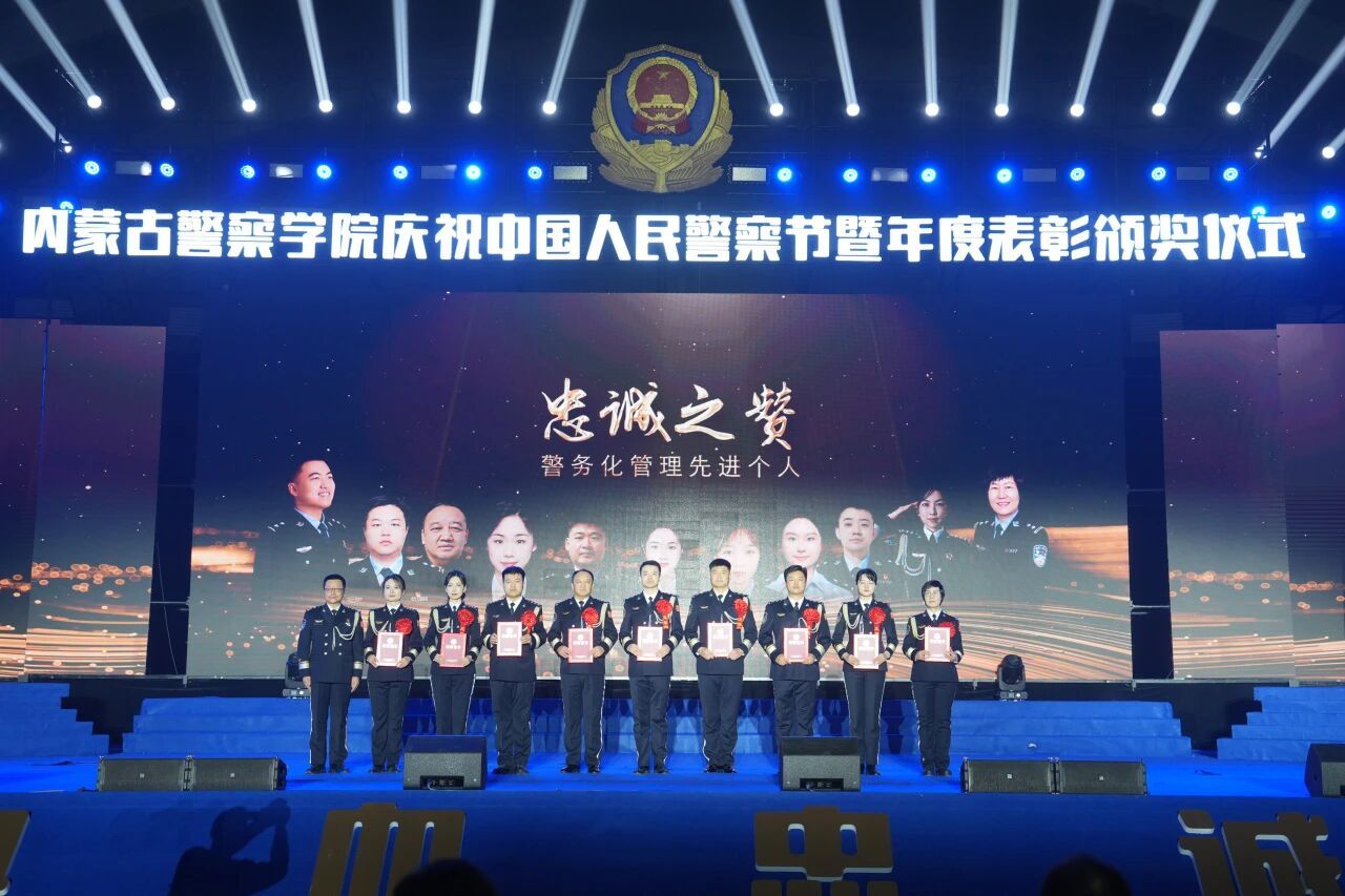 此次内蒙古警察学院庆祝第六个中国人民警察节暨2025年度表彰颁奖仪式,不仅是对过去一年工作的回顾与肯定,更是对未来的畅想与展望。站在“十五五”规划开局之年新起点,内蒙古警察学院始终坚持以习近平新时代中国特色社会主义思想为指导,以铸牢中华民族共同体意识为主线,围绕自治区“1571”工作部署,持续抓好忠诚教育、英模教育、警示教育、执法教育、保密教育等“五项教育”,以更高的站位深化实战化教学,以更宽的视野加强警务化管理,以更实的举措推进全区公安高等教育高质量发展,在育警铸魂的征程上勇毅前行,为护航平安内蒙古、法治内蒙古建设培育更多高素质公安预备人才,续写新时代公安教育事业的辉煌篇章。