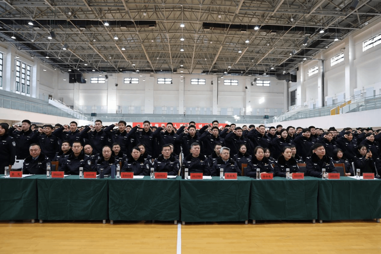 会上举行了庄严的实习出征宣誓仪式。946名学警高举右拳、目光坚定,以铿锵有力的声音庄严宣誓:“我志愿奔赴公安实习一线,勤学苦练、扎根基层,团结协作、严守纪律……”誓言字字千钧、掷地有声,既饱含着对公安事业的无限热忱,更彰显了警院学子投身公安实战的赤诚忠心与青春豪情。