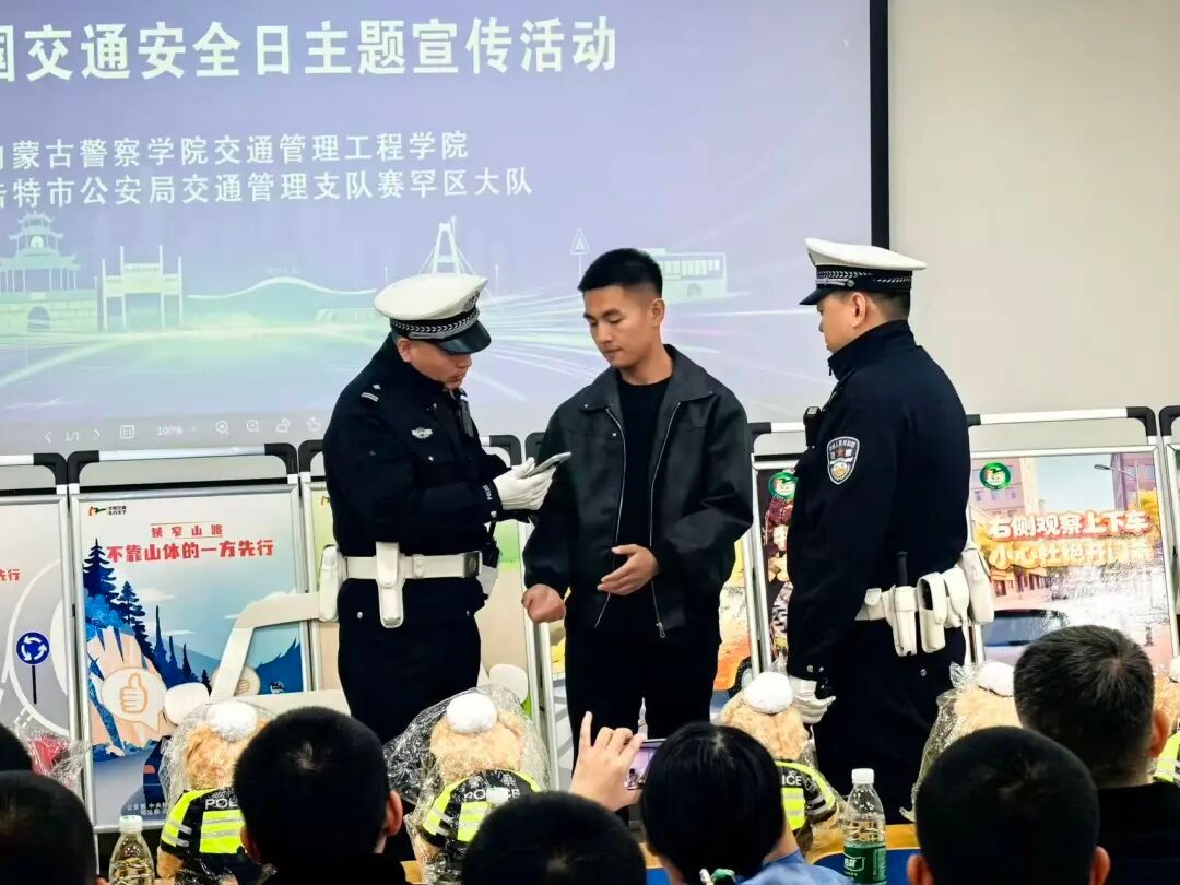 交通管理工程学院与赛罕区交管大队,共同开展了一场沉浸式交通安全主题宣传活动,将实战课堂融入校园教学,通过“演示+讲解+互动”的形式,推动交通安全教育入脑入心,有效提升了警校学生的责任意识与实战能力,为道路交通管理人才培养奠定了坚实基础。