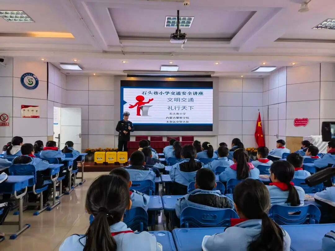 交通管理工程学院教师与玉泉区交管大队民警走进玉泉区石头巷小学,携手进行了一场以“文明交通 礼行天下”为主题的校园交通安全知识讲座。本次讲座旨在通过系统的交通安全知识讲解,让师生充分认识到交通安全的重要性,掌握基本的交通规则和避险技能,从思想上树立“安全第一”的观念,从行动上自觉遵守交通法规,共同构建安全、有序、和谐的校园及周边交通环境。