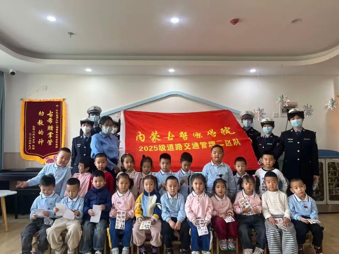 交通管理工程学院2025级道路交通管理专业2区队师生走进回民区第9幼儿园,精心策划开展了“警园同行,安全‘童’行”主题活动。活动旨在通过欢乐的氛围教授孩子们,在游戏中引领儿童认识、了解交通安全知识,同时体现警校青年志愿者关怀、爱护儿童,彰显关怀精神。