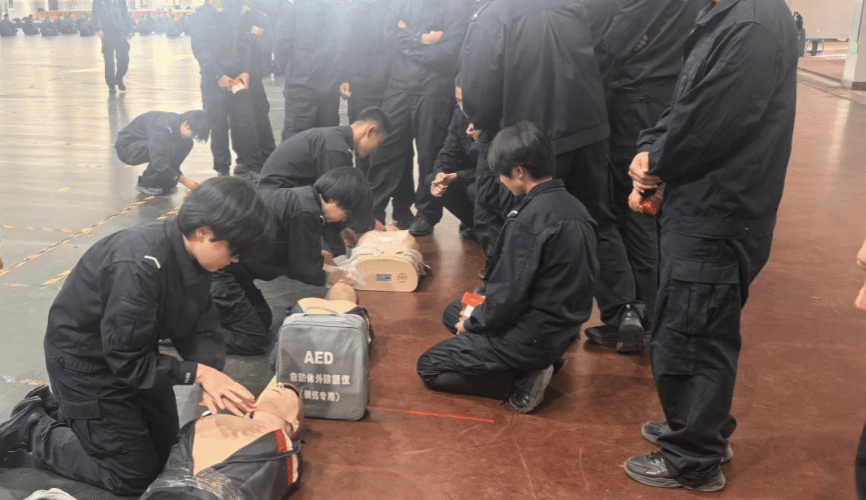 本次培训由学院教务处负责,授课人员由学院取得自治区红十字师资证的教师担任。培训课程主要讲解了心搏骤停的识别、心肺复苏操作流程、AED使用规范及团队协作救援等知识要点。在实操环节,参训学员分组进行技能训练,培训教师利用心肺复苏模拟人、AED训练仪等设备,逐项规范胸外按压深度、频率及人工呼吸。通过理论、实操练习,使师生熟悉应急救护基本理念,掌握心肺复苏(CPR+AED)、创伤包扎等基础应急救护技能。