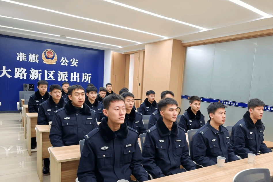 青春与藏蓝相遇,理想在警营启航。1月13日,准格尔旗公安局在大路新区派出所举行接收内蒙古警察学院2023级公安专业学生岗位实习欢迎仪式。旗公安局党委委员、政工室主任杨王保,内蒙古警察学院组织部四级主任科员邢佳浩出席仪式,政工室、薛家湾第一派出所、薛家湾第二派出所、大路新区派出所相关负责同志及19名实习生参加欢迎仪式。