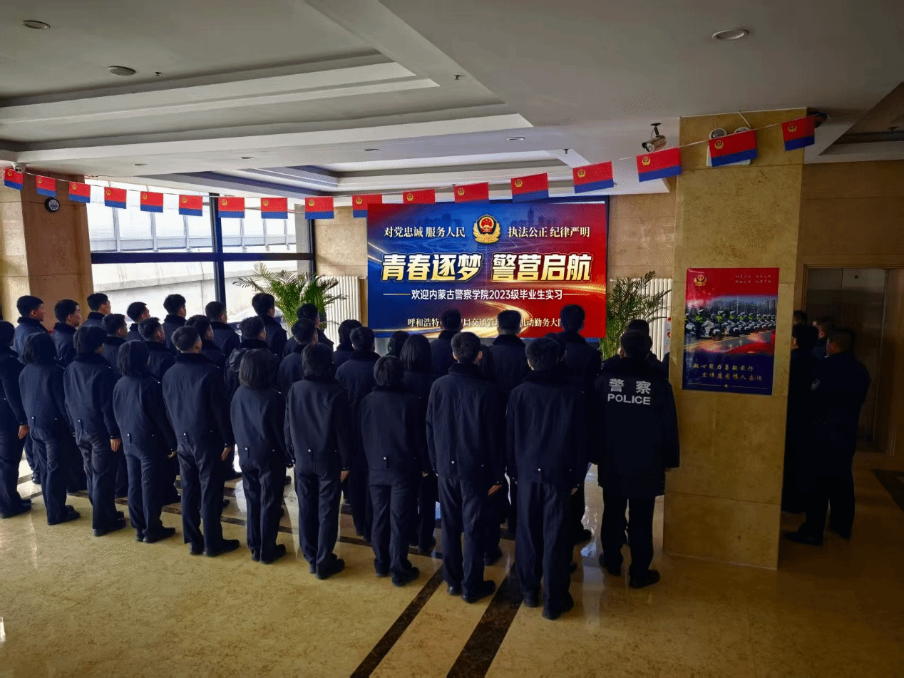 2026年1月12日上午,学院2023级道路交通管理专业35名实习学警怀揣对公安事业的憧憬与热忱,奔赴呼和浩特市公安局交通管理支队机动勤务大队,正式开启为期160余天的实习征程。
