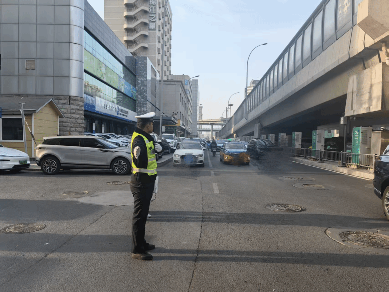 在新华大街重点路段,勤务大队实习生跟随民警全力开展高峰时段交通疏导工作。针对主干道车流密集、易拥堵的特点,实习学警规范使用指挥手势引导车辆分流,及时制止闯红灯、随意变道等交通违法行为,消除路面安全隐患,保障主干道通行效率,用实际行动守护市民出行安全。