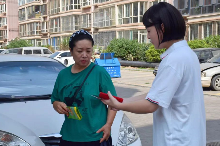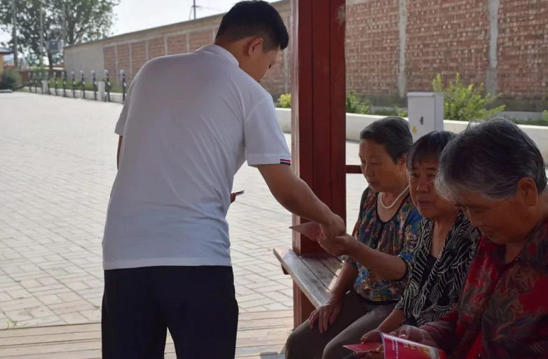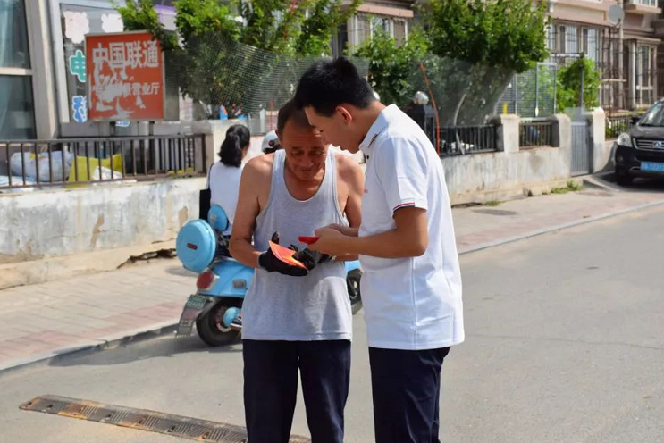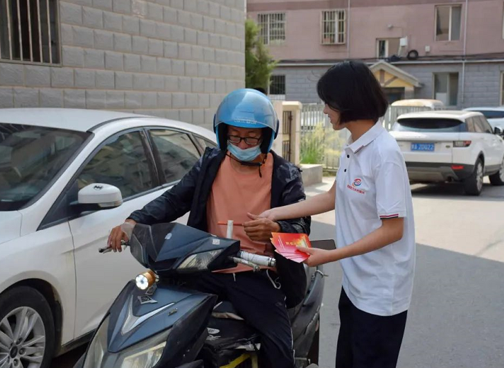 接着服务队的同学们在代州营村内发放学院印制的宣传手册,并向村民耐心的讲解相关内容。服务队同学通过访谈交流对该村的推普工作进行了深入了解。
