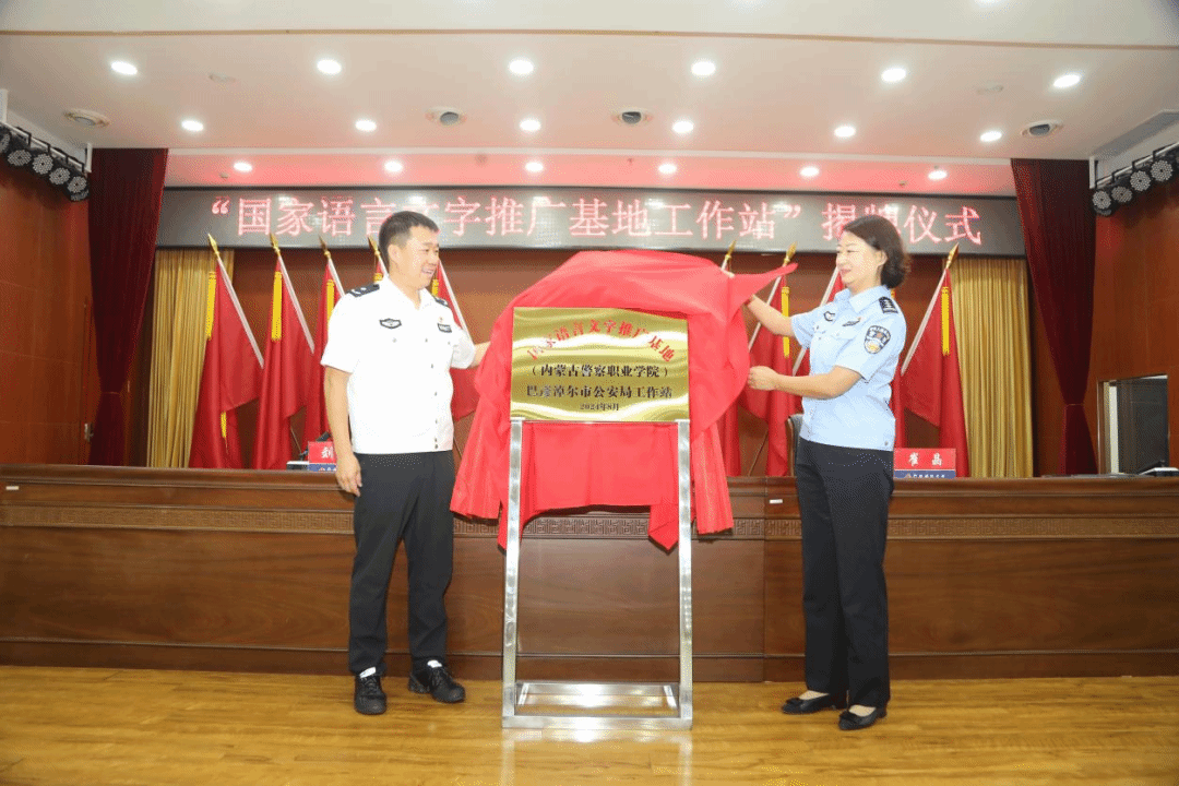 8月1日上午,基地在全区各盟市公安局设立的首个工作站在巴彦淖尔市公安局揭牌成立。学院党委委员、副院长哈布日,巴彦淖尔市公安局党委委员、政治部主任崔晶出席揭牌仪式。仪式由巴彦淖尔市公安局政治部副主任刘敏主持,巴彦淖尔市公安局各部门主要负责人和机关书记代表,学院语委办工作人员参加。仪式上,哈布日与崔晶共同为工作站揭牌。崔晶表示,巴彦淖尔市公安局将以国家语言文字推广基地工作站挂牌为契机,深入贯彻落实公安厅相关文件要求,切实提高语言文字工作站位,以铸牢中华民族共同体意识为主线,进一步加强与警院的合作共建,全力开展工作站建设工作。哈布日表示,学院将以习近平新时代中国特色社会主义思想为指导,以铸牢中华民族共同体意识为主线,以推动语言文字工作高质量发展为主题,以建设国家语言文字推广基地为契机,加强与巴彦淖尔市公安局交流合作,着力提升国家语言文字推广普及质量,助力自治区语言文字事业和区域经济社会发展。