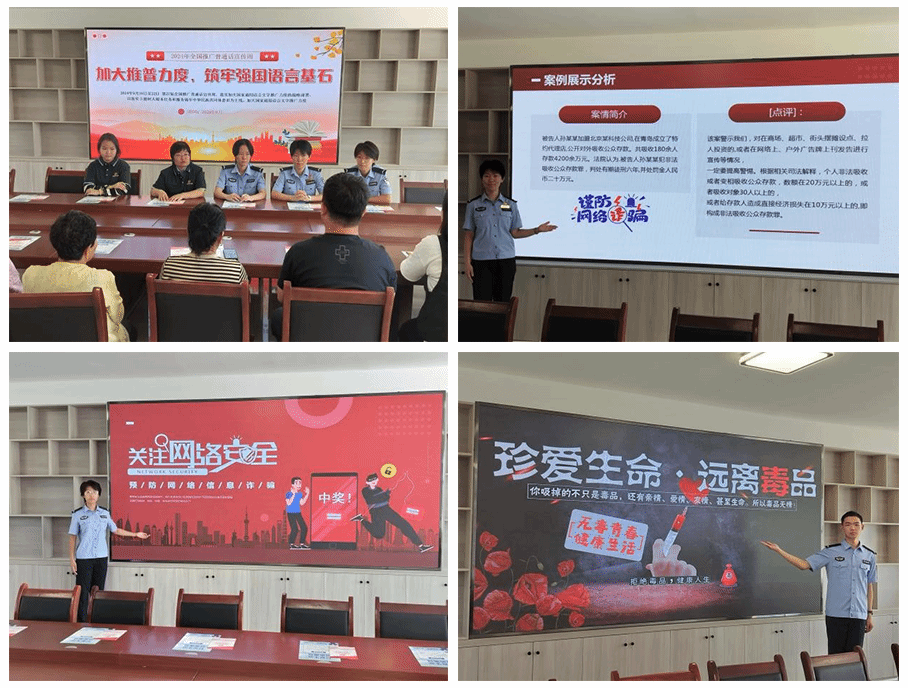 在固阳县召地村村委会,实践团充分发挥公安教育领域的专业优势,精心策划了一系列生动有趣的普通话推广课程和第27届全国推广普通话宣传周宣传讲座。“普通话角”成为了村委会最热门的区域之一,村民们在这里用普通话交流生活点滴,感受语言带来的温馨与快乐。同时,实践团成员用普通话为留守老人、儿童耐心讲解普通话等级考试知识以及禁毒、反诈的科学常识,为村民分发推广普通话宣传册和禁毒、反诈宣传单,向他们介绍推广普及国家通用语言文字及禁毒、反诈的重要意义。