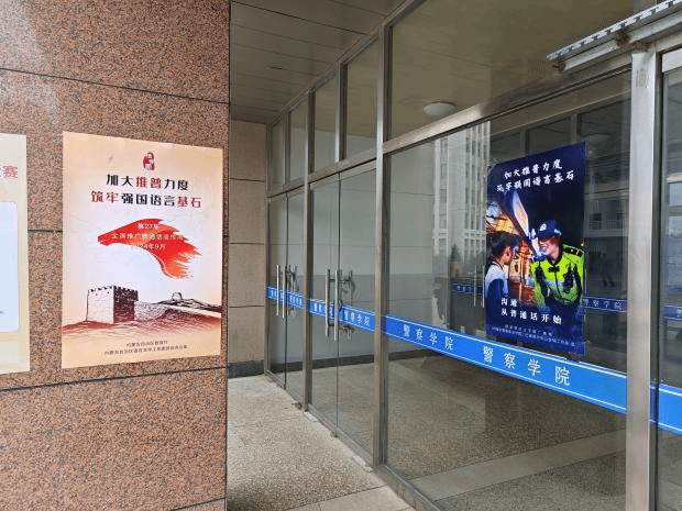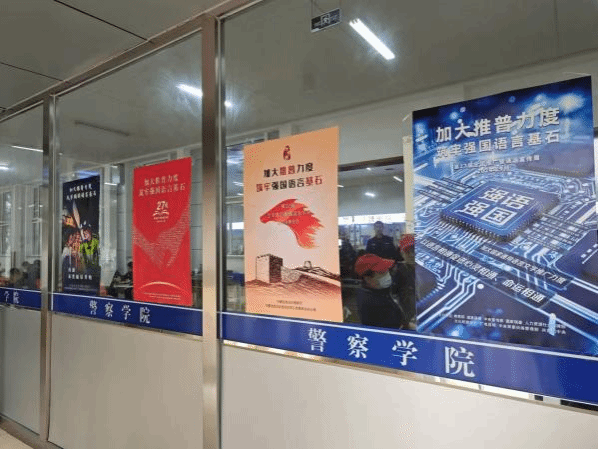 多部门制作“推广普及国家通用语言文字 铸牢中华民族共同体意识”“国家通用语言文字相关法规政策”“普通话水平测试相关规定”等推广国家通用语言文字展板,分别放置在办公楼和教学楼,供全院师生观看,营造浓厚的校园推普氛围。同时在校园各楼宇及橱窗内张贴普通话宣传海报,各年级各区队分别在教室内布置普通话宣传板报,大力宣传国家通用语言文字方针政策、法律法规和规范标准。