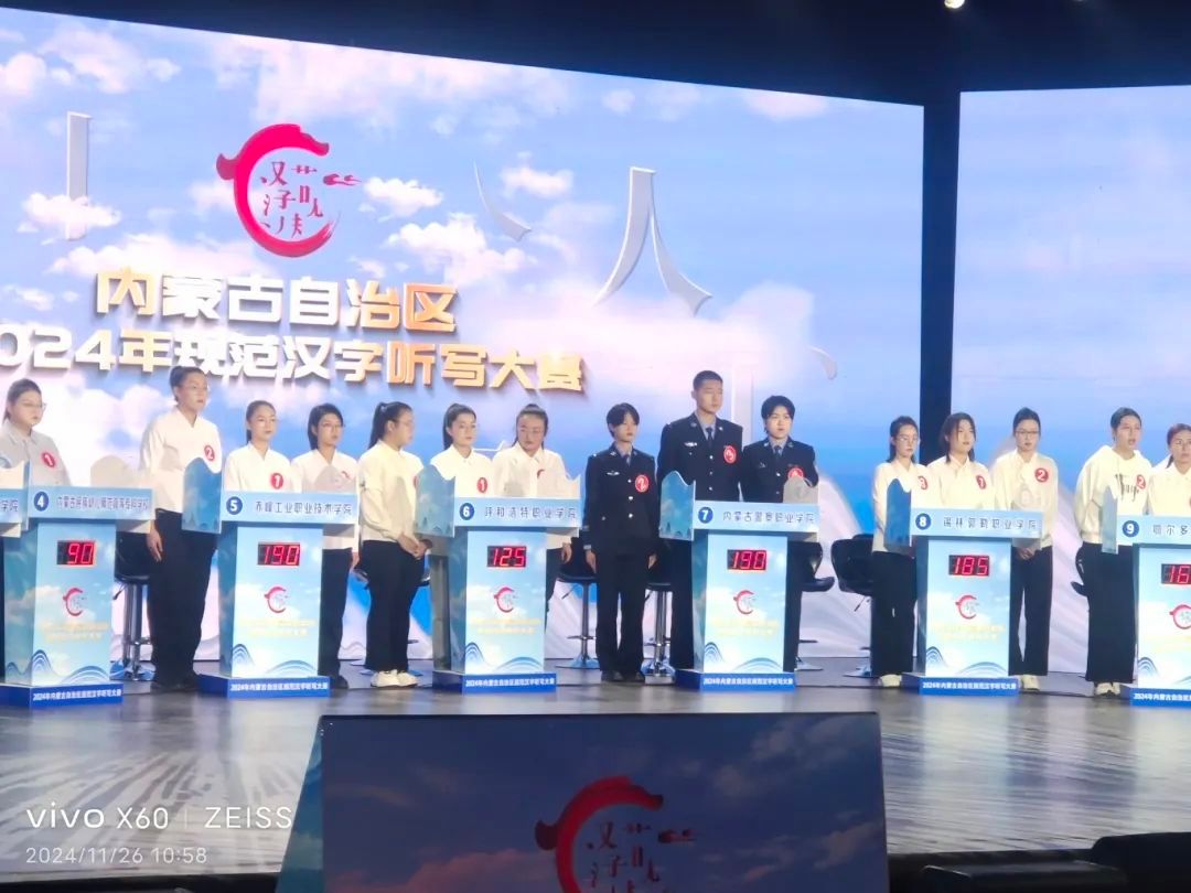 11月24日—29日,由自治区教育厅主办、呼和浩特民族学院承办的“自治区2024年规范汉字听写大赛”在呼和浩特民族学院举行。11月25日学院代表队(郭婧、韩乐颖、周鹏)在指导教师宋宇的培训和指导下,与全区专科院校共28支队伍同台竞技,经过一系列紧张激烈的角逐,学院代表队成功入围决赛。11月26日,在全区大学专科组决赛中,经过激烈的五个环节——“小试牛刀”“点字成诗”“字正腔圆”“火眼金睛”“眼疾手快”大比拼,最终学院代表队获得亚军优异成绩。